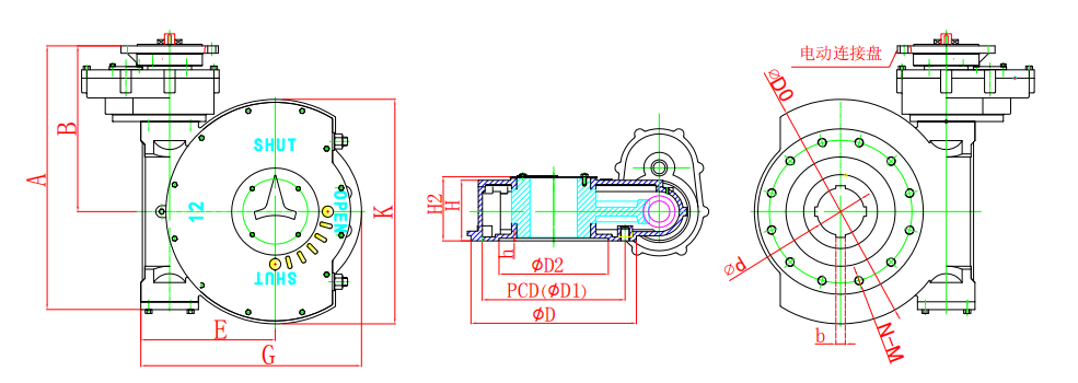 該系列是直齒輪箱與蝸輪箱對接成為蝸輪減速增壓機(jī)構(gòu),配上電裝組合成為三級傳動,實(shí)現(xiàn)了智能自動化,提高了工作,機(jī)械總效率,使用小電裝開大閥門,節(jié)省了使用成本。